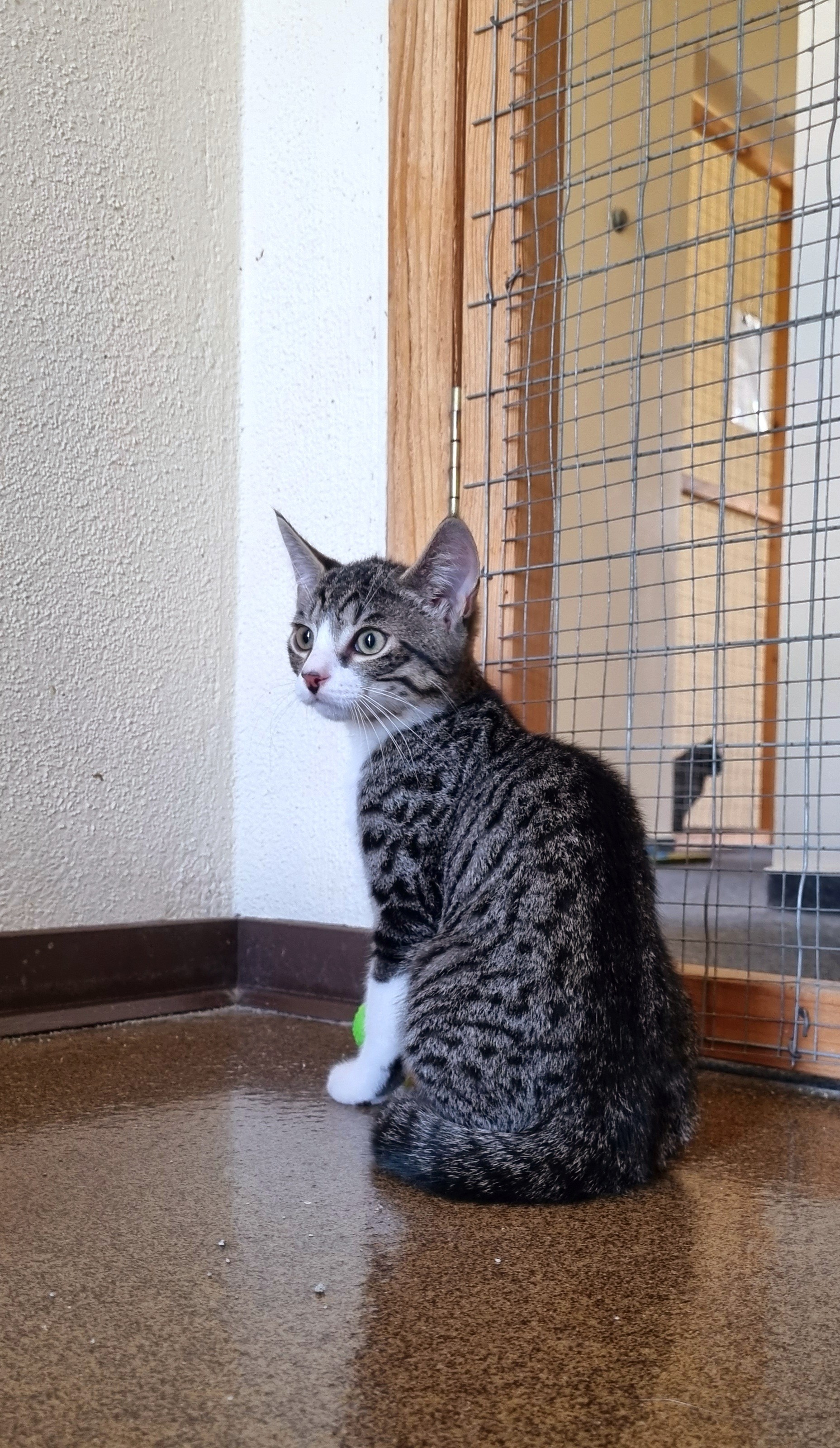 . Der Bub weiß noch nicht so richtig was er von fremden Menschen halten soll...aber wir sind uns ganz sicher, dass er mit den richtigen Menschen an seiner Seite, bald seine Scheu ablegt. Der junge Kater ist wohl auch als