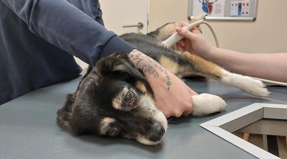Aufgrund unserer hochmodernen Aufstellung im Bereich der Sonographie, können wir Ultraschalldiagnostik auf hohem Niveau anbieten. Die Ultraschalluntersuchung dient zur Darstellung der inneren Organe, der Diagnose von Darmverschlüssen, Pancreatitis, Flüssigkeiten in Brust- oder Bauchhöhle, Trächtigkeitsüberwachung, Zuchtzulassungen z. B. beim Briard zur Darstellung ektopischer Ureteren uvm.